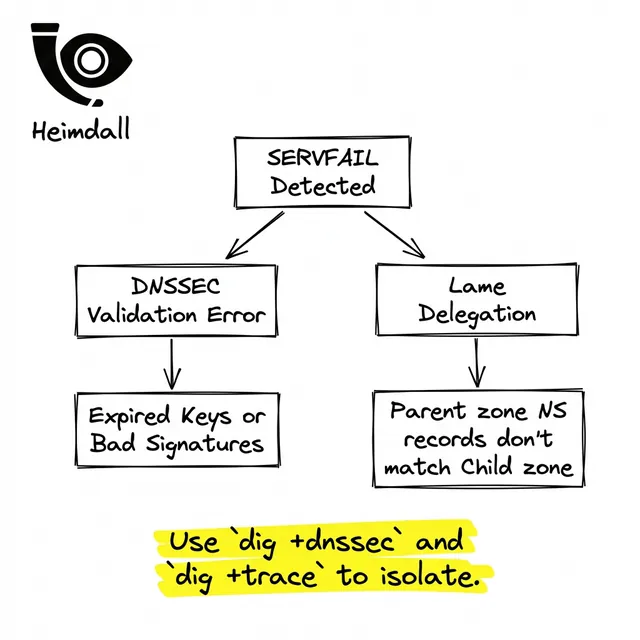 SERVFAIL means the resolution chain is broken. Learn how to fix DNSSEC validation failures and lame delegations to restore traffic immediately.