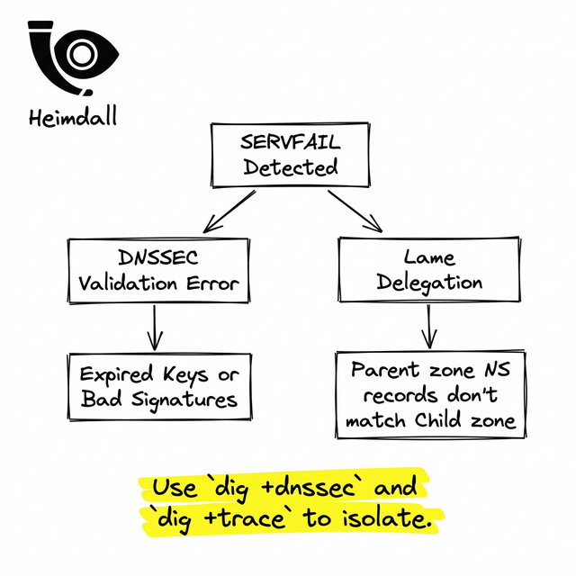Un SERVFAIL est un arrêt complet. Le résolveur refuse d'accorder sa confiance. Voici le guide de triage d'urgence.